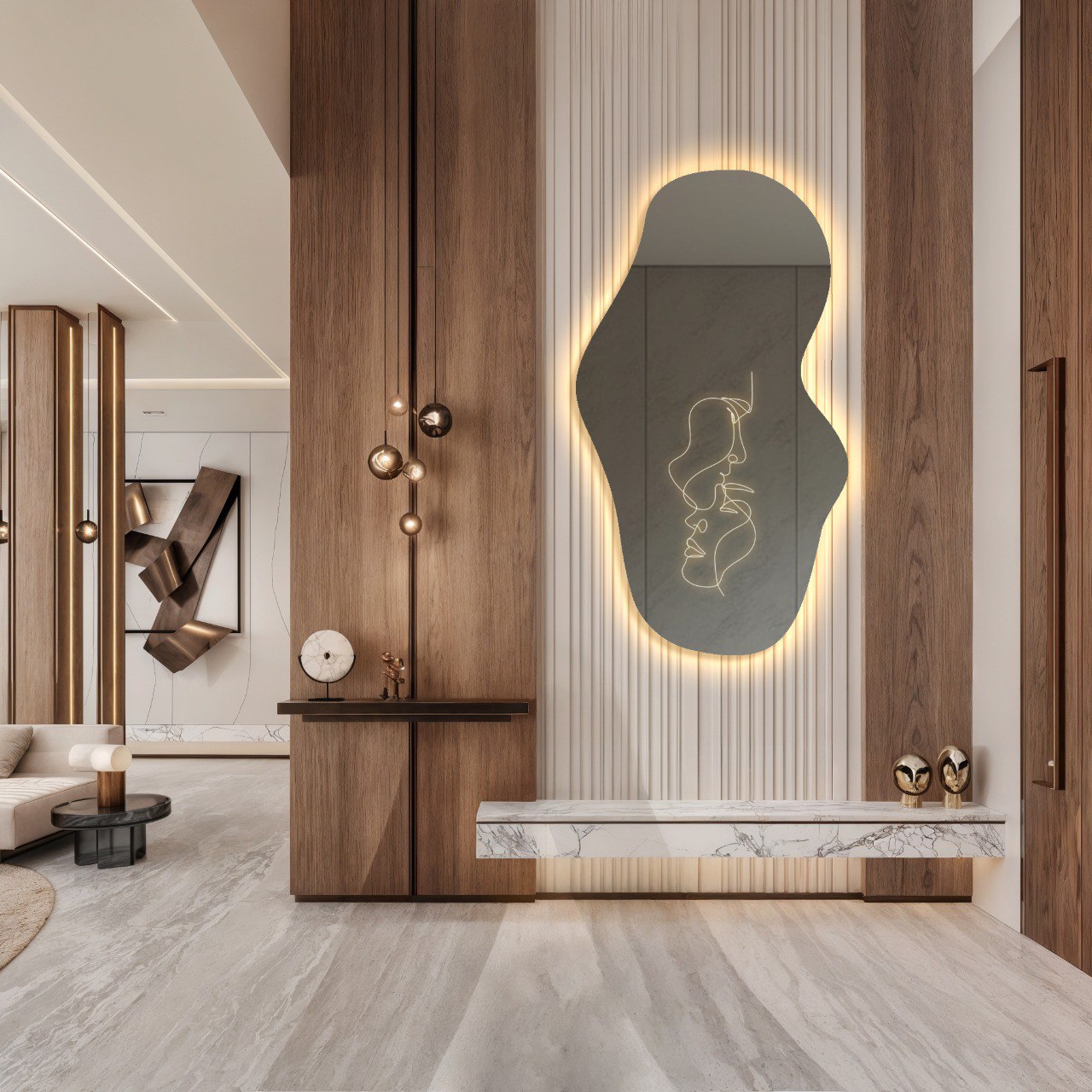 وقتی صحبت از دکوراسیون حمام و سرویس بهداشتی میشه یکی از عناصر چشمگیر آینه است که باید هم کارآمد باشد و هم زیبا مثل آینه دفرمه روشویی Code : ACF01 که کاربرد های زیادی مانند: طرح لیزری، سنسور تاچ لس (اشاره دست)، صفحه حرارتی ضد بخار، کیت بلوتوث با قابلیت مکالمه، کیت ساعت و دماسنج، ابزار تراش،آینه زوم (اصلاح)، نئون، نور سه رنگ (مهتابی-آفتابی-طبیعی)، سند بلاست (با این تکنیک سطح آینه مات می شود تا بازتاب نور یکنواخت تر بازتاب دهد.