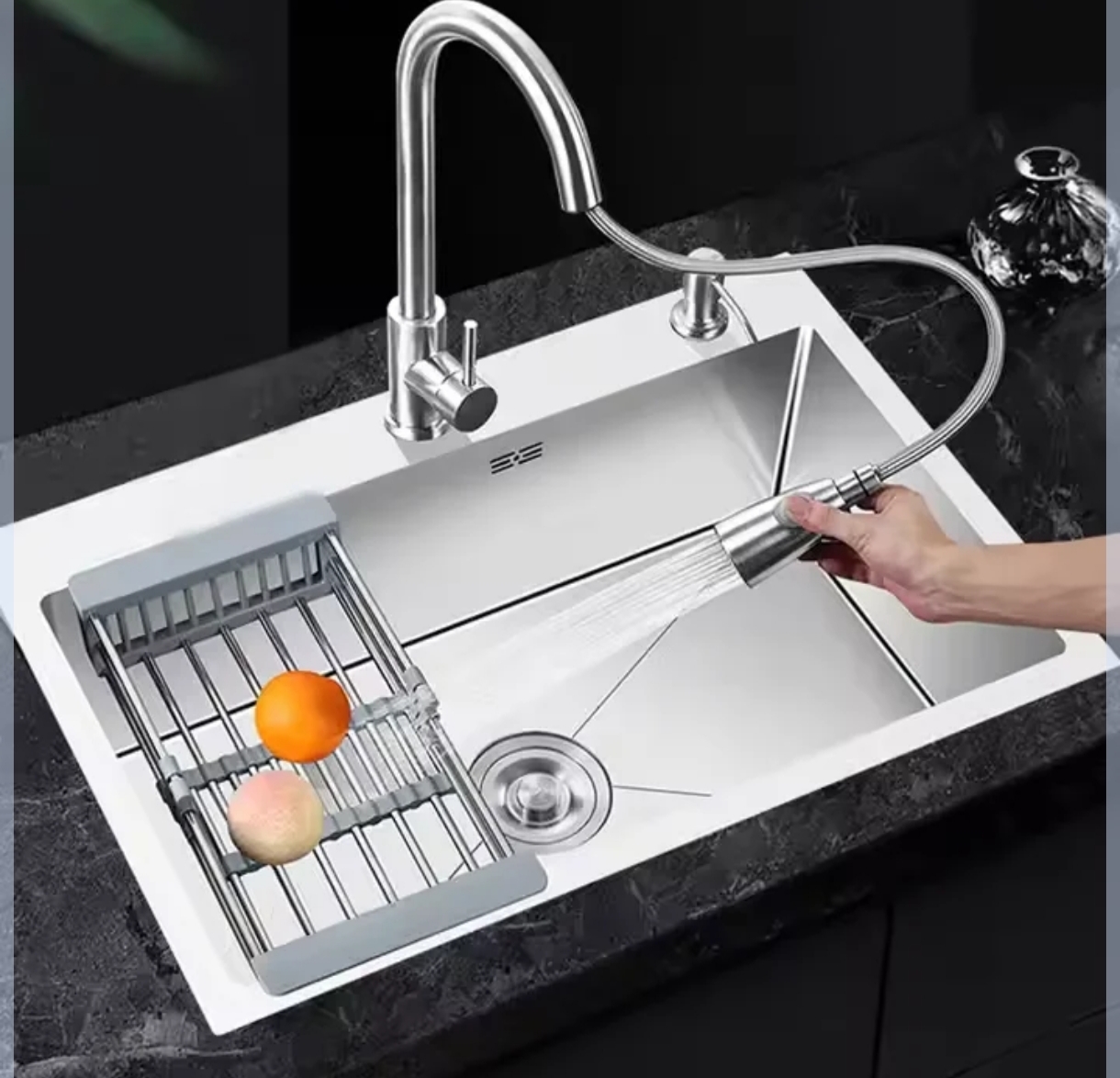 این مدل سینک مجهز به اکسسوری‌های کاربردی مانند سبد متحرک، تخته کار جمع‌شونده و آبریز مقاوم است. وجود این لوازم جانبی باعث می‌شود فضای آشپزخانه بهتر مدیریت شود و هنگام شست‌وشو یا آماده‌سازی مواد غذایی راحتی بیشتری داشته باشید.