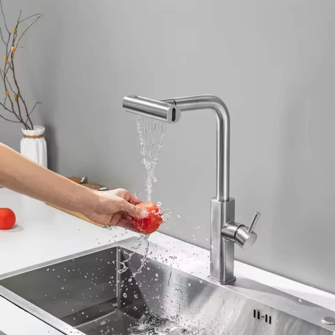 سری شیر کاملاً چرخشی طراحی شده تا دسترسی به تمام نقاط سینک بهراحتی امکانپذیر باشد. یکی از مزیتهای مهم این مدل، عدم نیاز به برق یا باتری است که باعث میشود بدون نگرانی از خرابیهای الکترونیکی، سالها از آن استفاده کنید.