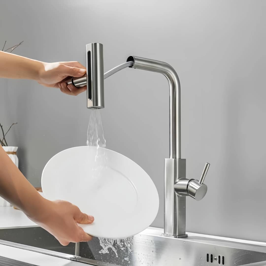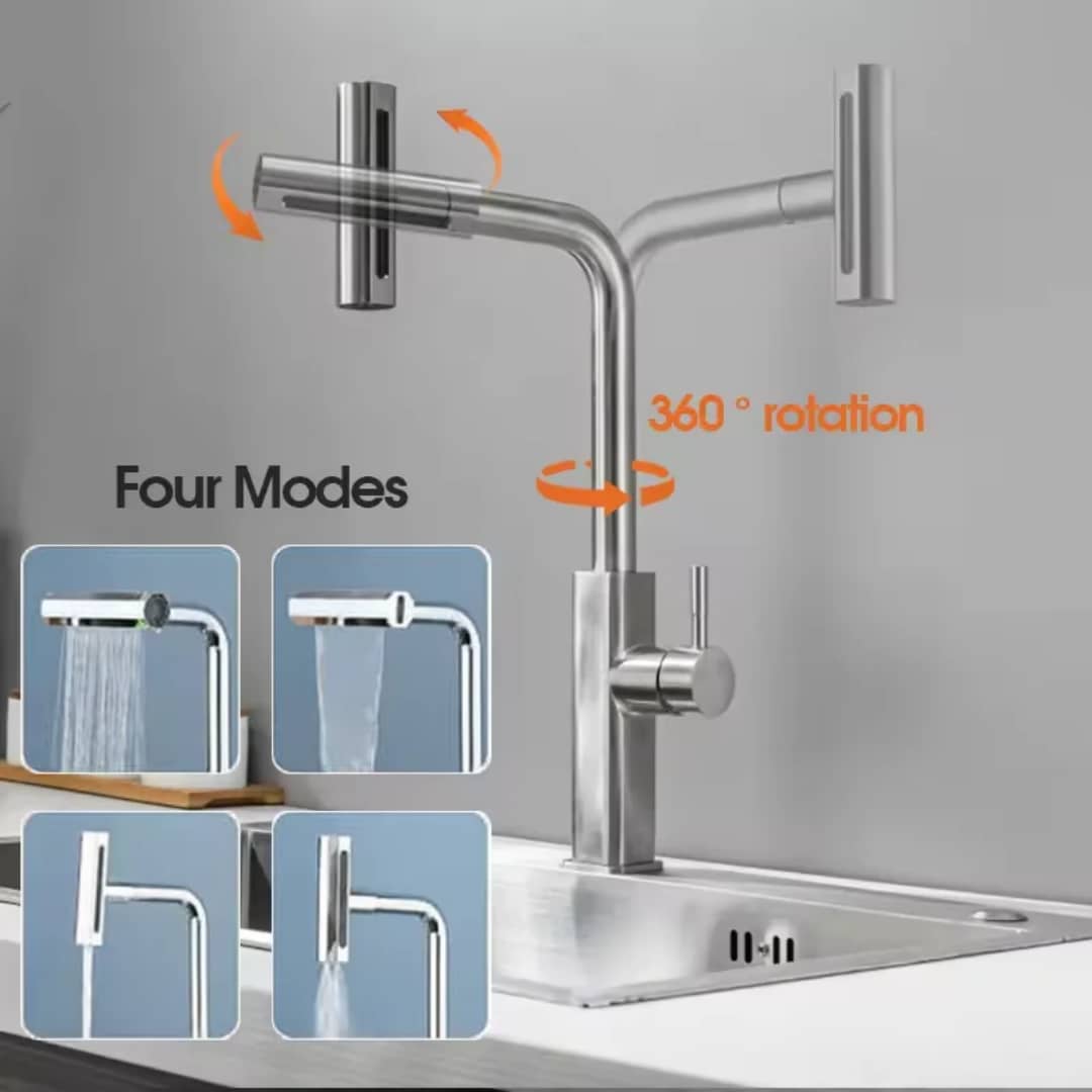 یکی از مهمترین ویژگیهای این مدل، عملکرد جریان آب چهارحالته است که امکان تنظیم نوع پاشش آب در ۴ حالت مختلف را فراهم میکند. این قابلیت باعث میشود بسته به نوع شستوشو (ظروف حساس، قابلمههای بزرگ یا تمیزکاری سینک) بهترین حالت جریان آب را انتخاب کنید.